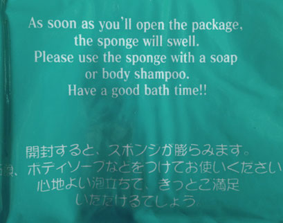 左のものはホテルに泊まった時に子供用に真空パックになっていたスポンジの袋です。