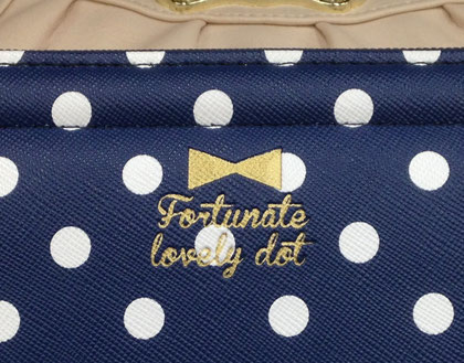 お店で小物を見ていたらこういうお財布がありました。"Fortunate lovely dot"って何でしょうね??幸運を呼ぶかわいい水玉模様とでも言いたかったのでしょうか?でもこれだと水玉が幸運ってことになって面白いです。先の意味で水玉を使ったとしたら"dot"も"dots"と複数になるべきでしょう。