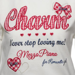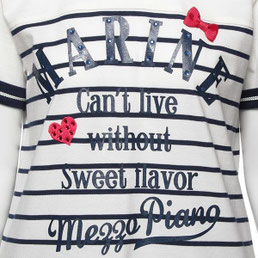 日本に住む姪っ子が好きなブランドにポンポネット(pomponette)というものがあります。これはフランス語をあしらった服が多いのですが、その姉妹ブランドにメゾピアノというのがあり、こちらはメルヘンな感じの服に英語が書いてあります。