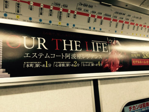 その中で写真を撮ることができたこの面白い英語。大阪の地下鉄御堂筋線です。(写真が灯の関係で見づらく申し訳ないです・・・。)"OUR THE LIFE" もちろん意味をなさない英語ですから説明のしようもないのですが、これ、気がつきました?阿波座(あわざ)にかけてるんですね!大阪らしい。