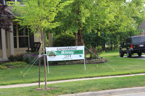 4.アメリカでは卒業生がいる家庭ではこういうものを庭に立てる家がたくさんあります。うちの近所にもたくさん出ています。