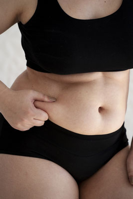 ここ、中西部では six-pack になるべき筋肉などどこへ行ったのかわからないような人ばかりで、 俗に "love handles" と言われるお腹の回りにたまった脂肪をつかむことができる人が多いです。お腹に脂肪がたまり、ズボンやスカートのウエストの上に脂肪が乗っかるような形になることを "muffin top" とも言います。アメリカのマフィンは大きくてカップからはみ出して上の方からこぼれるような形になっているものがよくありますので、そのことです。